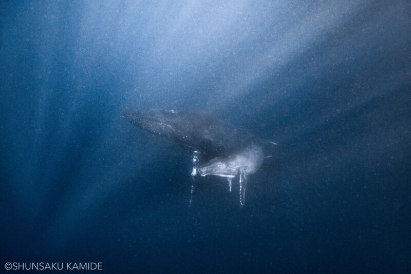 ・ホエールスイム出航日数/全員が船上でクジラを見れた日数/全員が水中でクジラを見れた日数 25日/21日/19日