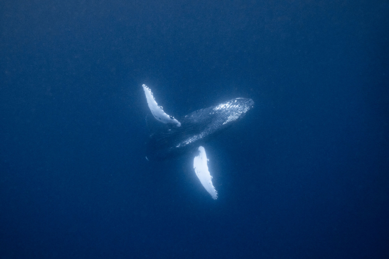 凪の海でのんびりクジラ
