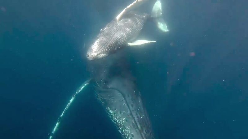 この二匹を海に逃がした後に、クジラさん登場!