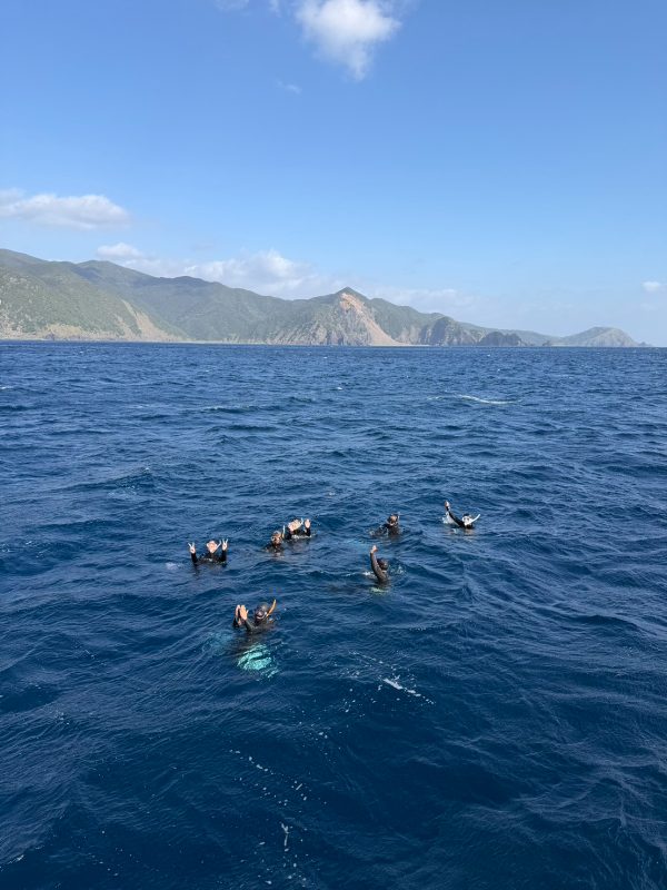 ・ホエールスイム出航日数/全員が船上でクジラを見れた日数/全員が水中でクジラを見れた日数 7日/7日/5日