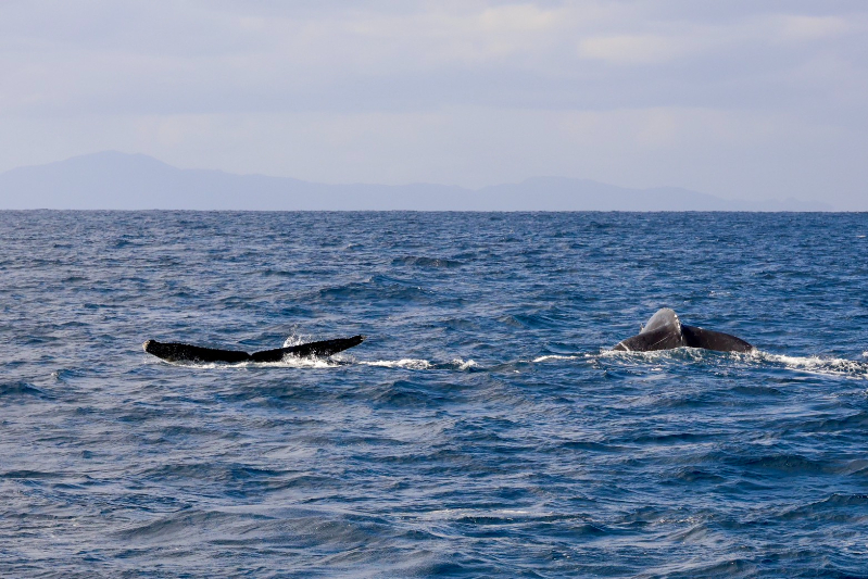 ・ホエールスイム出航日数/全員が船上でクジラを見れた日数/全員が水中でクジラを見れた日数 2日/2日/1日